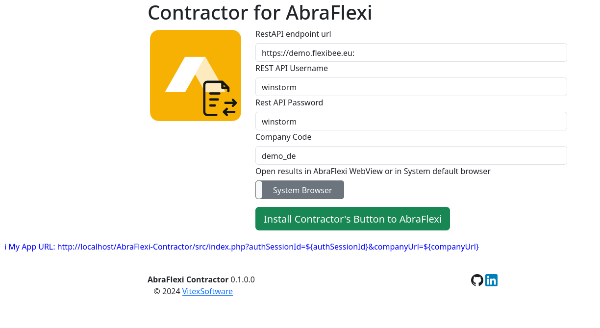 Fill in the access credentials for your AbraFlexi in the form. If they are correct, a trigger button will be created in AbraFlexi's received invoices.