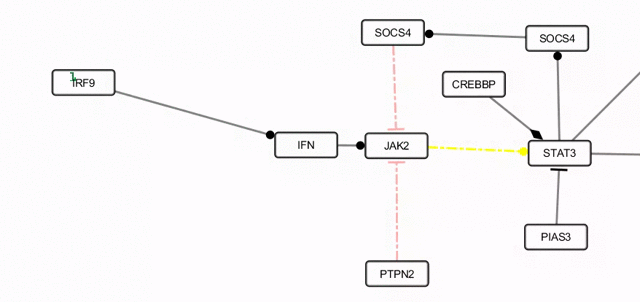 - This purely visual feature takes any edge that has previously been allocated a value of activating (+1), inhibiting (-1), or null (0) and gives it a corresponding circle, T, or diamond interaction symbol. Furthermore, if the pathway is taken directly from a KEGG source (like KEGGScape), edges are automatically changed based on provided information.