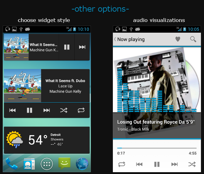- Audio visualizations on now playing screen(experimental at this point)