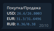 Эта команда показывает курс валют для Долларов, Евро и Рублей
