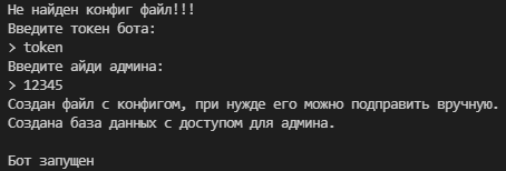 Для первого запуска вам понадобится токен бота и ваш id, и после создаст файл конфига который вы сможете в любой момент изменить.