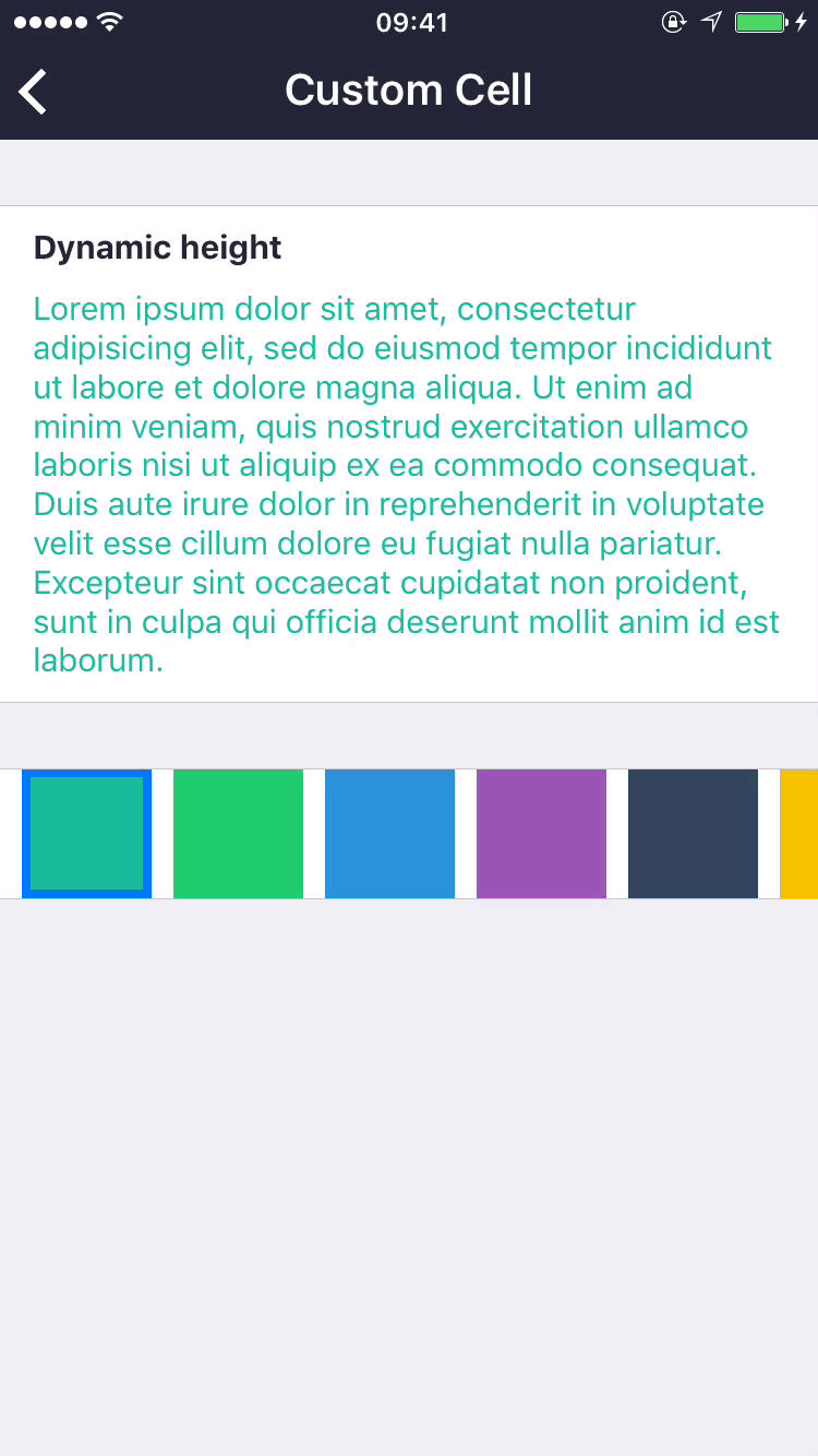 Cell There is likewise no need to inherit from the default provided cell class (FormLabelCell etc ...); only conform to the corresponding protocol. You can use Nibs, of course. An example with LabelRowFormer:
