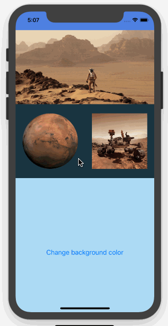 - Button component - must be able to toggle the background color of the container view