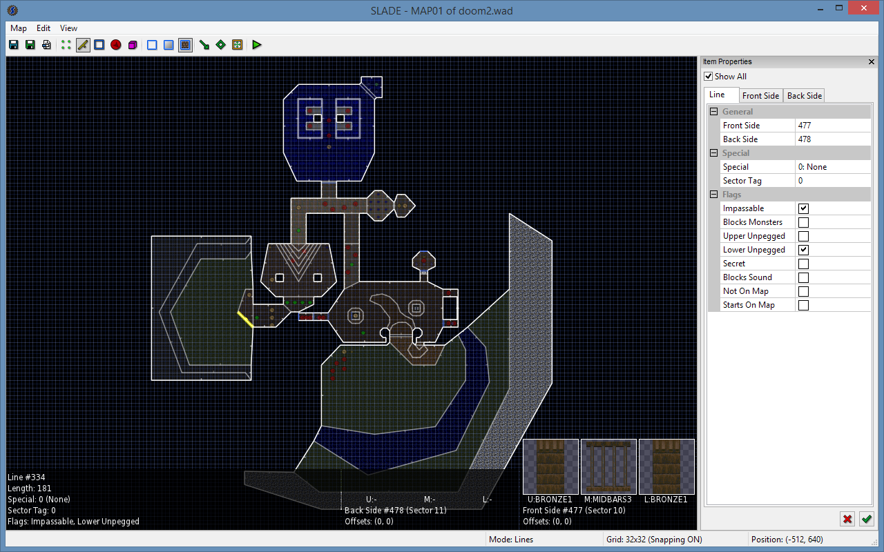 - A reasonably accurate preview of what the map will look like in-game with correct Doom aspect ratio, simulated depth fading and shaded orthogonal walls