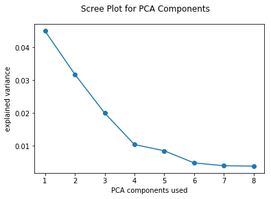>>> pca_scree_plot(pipeline.named_steps['pca'])With the test y values and the predicted y values, we can look at the residuals: